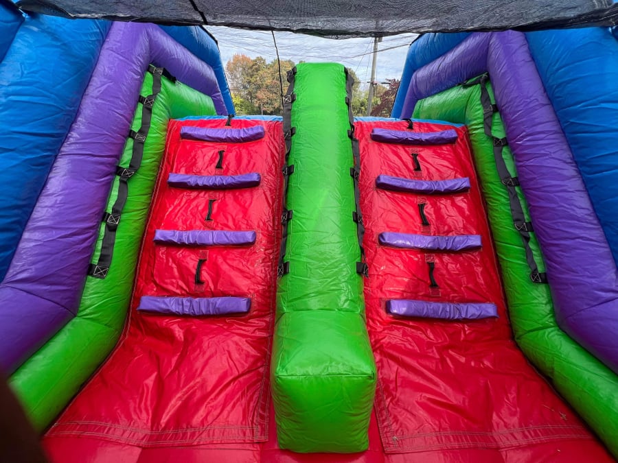 Get ready for a thrilling adventure with our Atomic Mega Obstacle Course! Measuring 45 feet in length, this vibrant inflatable obstacle course is the perfect addition to community gatherings, school events, and backyard parties. Set up some friendly competition and watch as kids and adults alike race through the colorful course, providing hours of entertainment and excitement.